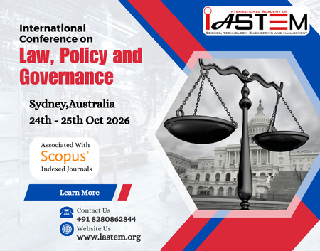 About the Event/Conference : International Conference on Law, Policy and Governance (ICLPG) - 2026) will be held in Sydney,Australia during 24th - 25th Oct 2026. ICLPG is to bring together innovative academics and industrial experts in the field of Science Technology and Management to a common forum.
